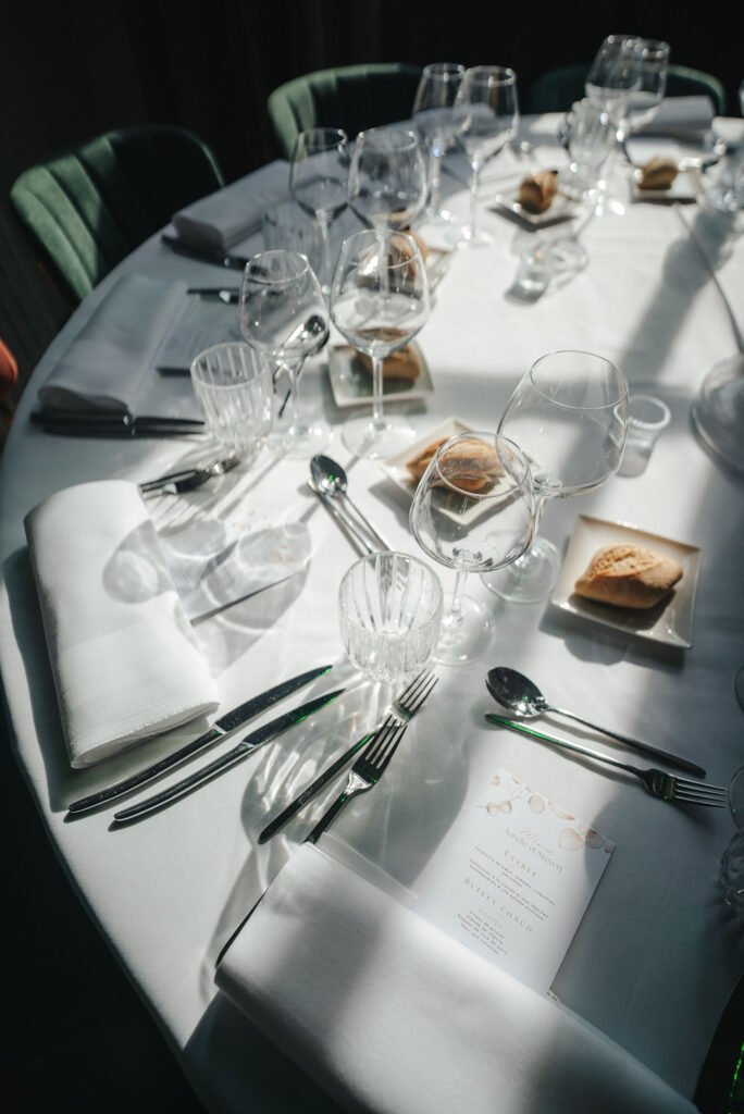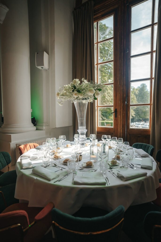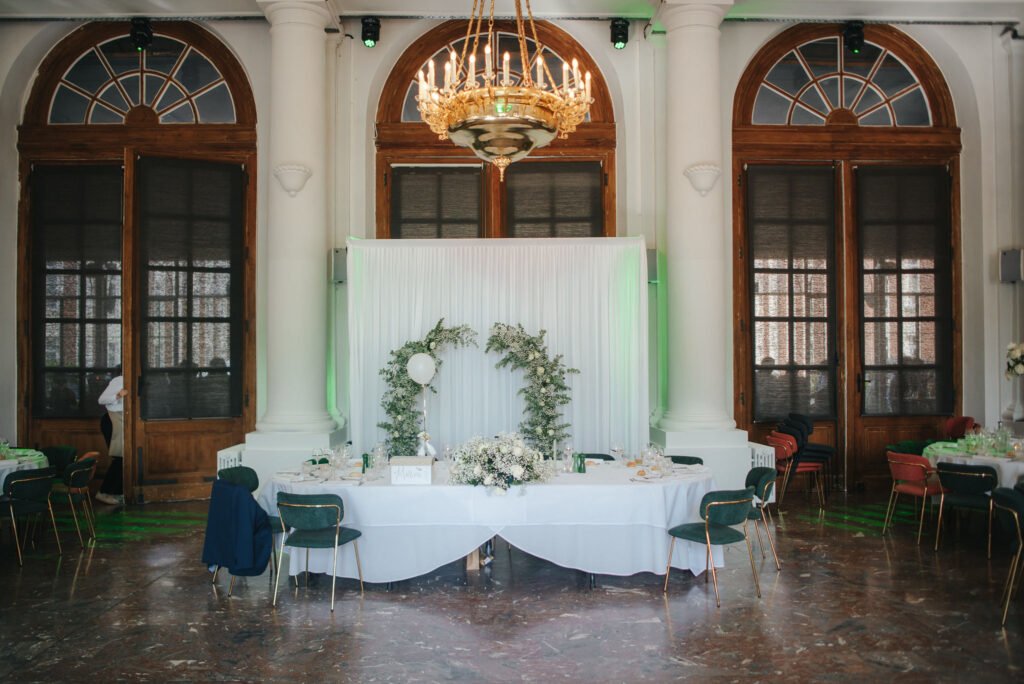 From the beautifully dressed tables to the statement ceremony arches, every detail was thoughtfully curated to create a soft, romantic atmosphere. With 23 tables to decorate, each one was styled to feel cohesive yet special, blending lush florals, refined accents, and warm touches that brought the entire space together, all respecting the theme (green, white, gold, beige), defined by the couple.